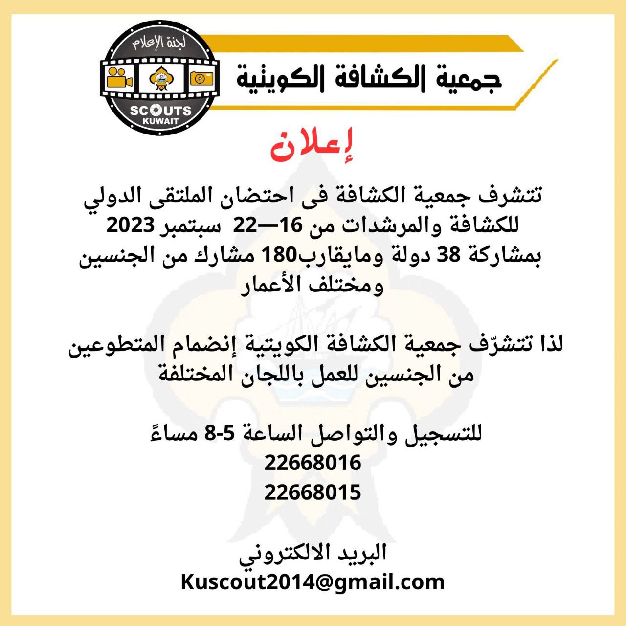 عقد مجلس إدارة جمعية الكشافة الكويتية أول إجتماع له بعد قرار تشكيله من قبل وزير التربية ووزير التعليم العالي د. بدر العيسى ، وترأس الإجتماع رئيس الجمعية الدكتور عبد الله الطريجي وقد اختير الوكيل المساعد للتنمية التربوية والأنشطة فيصل مقصيد نائب للرئيس وابراهيم سكين أميناً عاماً...